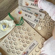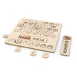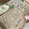 Деревʼяна планшетка з прорізними отворами для літер (у кожному отворі — контур літери, приємний на дотик, який дитина може обводити пальчиками);